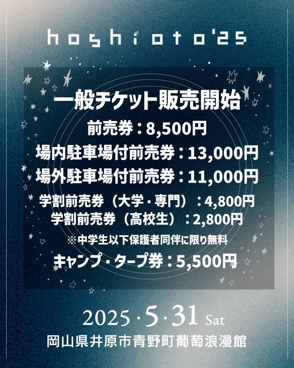 hoshioto’25の一般チケット販売が1/23(木)12:00から販売開始となります!